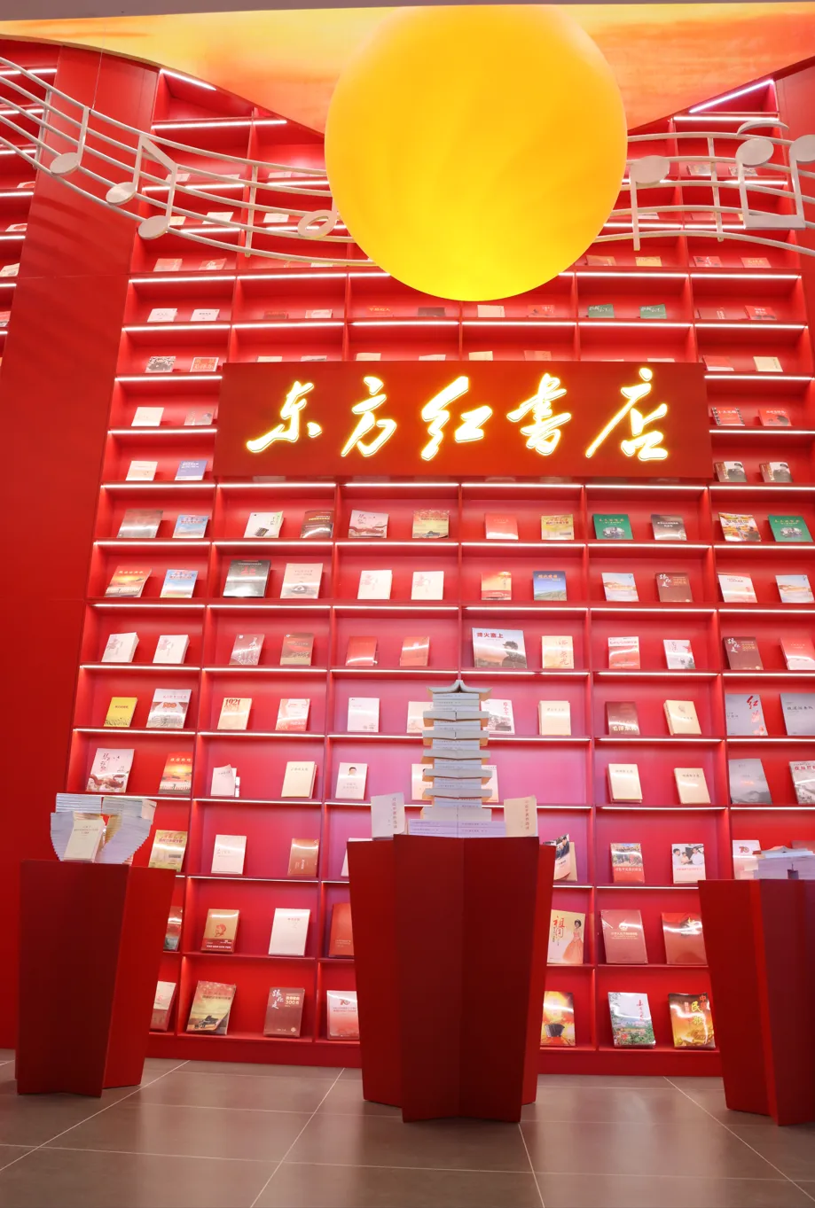 东方红书店位于《东方红》歌曲创作发源地佳县东方红文化产业园内,面积为1000平米,中国第一家红色音乐文化主题书店,是集红色图书阅读、红色音乐教育、红色教育研学体验于一体的红色阅读文化空间。